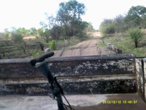 Next morning rode up and down the main street, which was a sand road to find road crossing over the Zambezi river. Only to find the longest bridge which is 3.7 km is only a railway line bridge which has a walkway on the one side. Then to find the entrance had to ride around a little. Again fell off bicycle because cleat could not click out fast enough. By this time the cleats were very tight from all the sand and dust stuck in them. By the time I finished this trip the cleats were well worn in and started to click in and out easier.