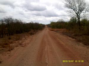 The N1 is a sand road that would need a 4X4 if wet. I passed two donkey cars, one motor bike and a two wheel drive pick up in the next 35 km. Stopped to make breakfast at about 10 am. Nice bushveld most of the way. There were farm lands cut out of the bush. Looks like a no till farming method using a hoe. All fields have a small thatched shelter next to it so they can get out of the midday sun. Looks like they also keep an eye out for elephants coming to damage their crops, from this shelter.
