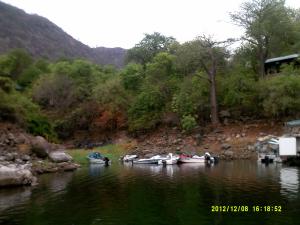 We stopped at a big intersection of gorges that had a few rocks sticking out of the water. We had some success at this place the previous day. Here we had some very big bites. Then to my surprise I hooked a big one. It worked me so hard my muscles burned and the rod was singing. I eventually boated it. Champion of the day, it weighed in at five kilograms. That made me one very happy beginner fisherman.  This is the biggest fish that I have ever caught. Must admit fishing is normally just a time to rest next to the water and feel at one with nature. If I catch something it is a bonus. Do not come to me for fishing tips you might never catch anything. All fish that were caught for the day we released back into the dam.