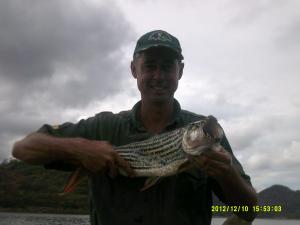There was about six fish in the boat by the time I boated my first tiger. Only about one kilogram. I was so chuffed, there after followed a grand photo session. I only boated three for the day.