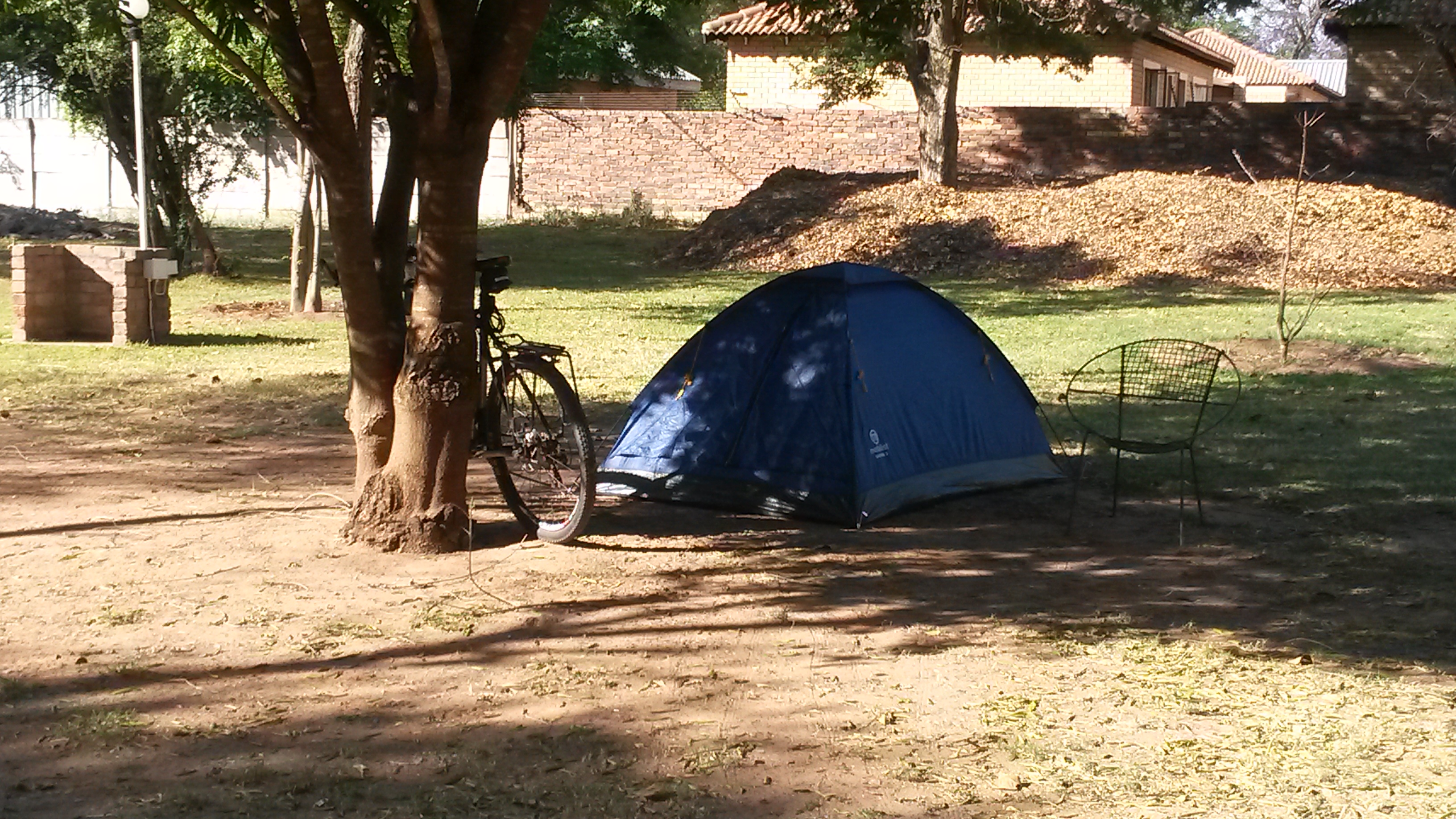 Stopping at a Shop at garage to get a few supplies and rode out of town to the Vaalwater river oord. This is just a few km on the other side of town. They have a few rooms, with a small bar and restaurant with a limited menu. David and I landed up eating steak egg and chips. By this time the temperature started to drop and warm clothes needed to be put on. As we went out to find the camp site Annie and Steward arrived in their car. So off we went and pitched tents. My bike and tent left and David slept in tent right.
