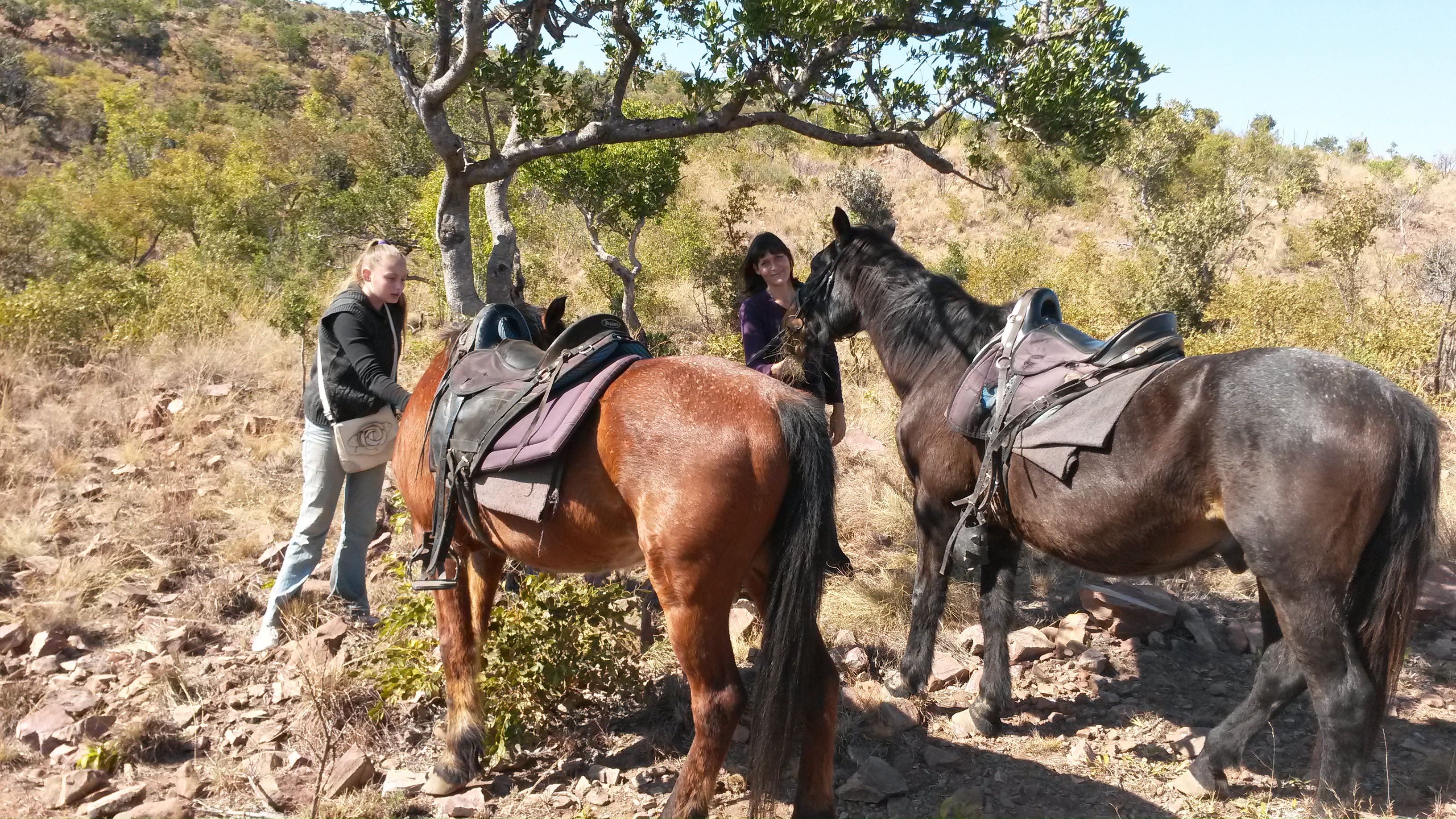 First was Thandile guest farm (www.tandilecountrylodge.co.za) where we did some horse riding. The owner manages the lodge himself. He has a passion for horses. He has trained all his horses to work with herding cattle and guest rides. The horses have a very gentle nature and are very aware of your riding skills. They adjust according to the feel which you give them. So if you just want to plod along they will do it or if you want to get some wind in your hair, off they go.20140702_113415 All horses range free in the bushveld hills and are rounded up and saddled for you. So you need to make bookings with Cobus before hand.  The roads wind up from the valley bottom to rocky hills where giraffe,   kudu,impala,klipspringer and other bushveld animals range.  What is nice, time is no problem. If you want to 20140702_112320ride for one hour or three it is the same price. Cobus makes sure the horse matches you and that all saddle adjustment are made to fit you.