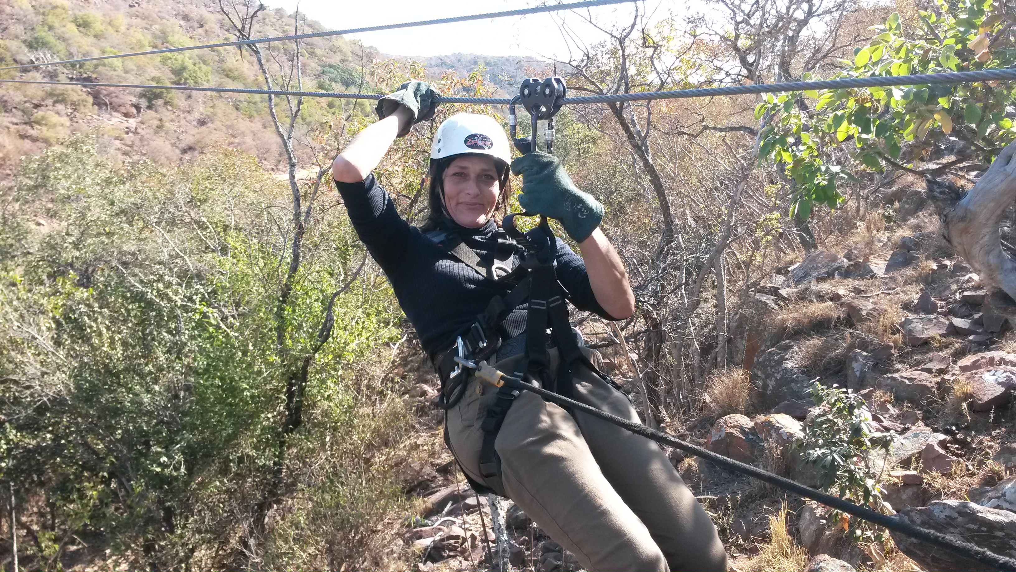 Today we did the Zipline tour (http://waterbergzip.co.za) at Tabo Monate game lodge. It has a set of 11 ziplines criss crossing a valley.Tour takes about two and half hours.20140703_131224 20140703_131329 For a person like me that is a little afraid of heights it was a good challenge. The guides were very friendly and safety continuously. This was a wonderful experience. Would recommend it to anybody spending a weekend up in the area. Longest Zipline was about 190 m.